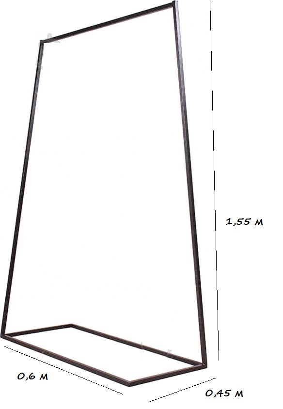 Підлогове вішало-стійка для одягу до магазину. Параметри: ширина 600 мм, висота 1550 мм, глибина 450 мм.