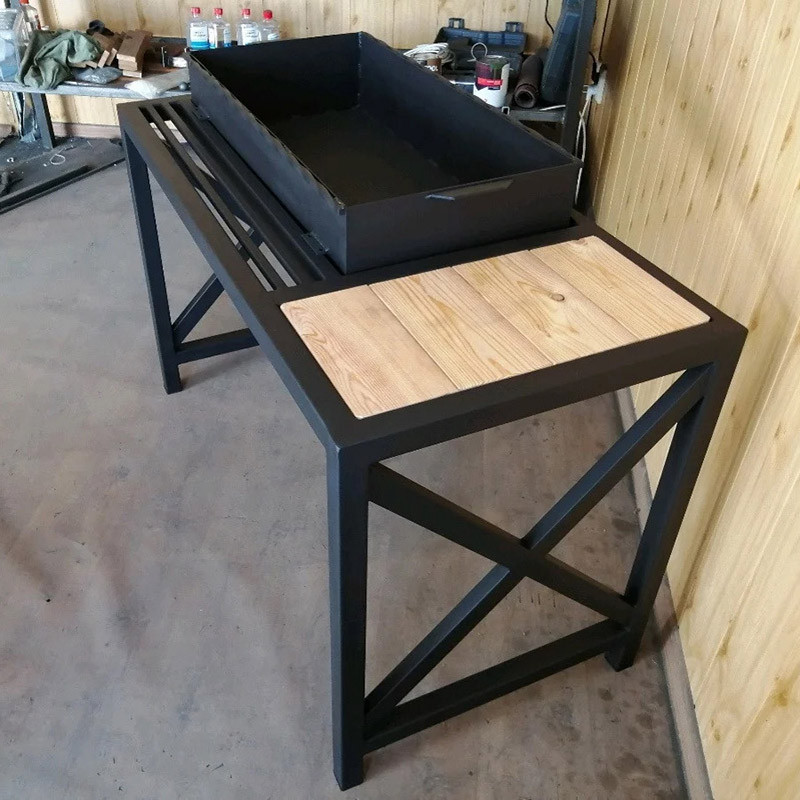 Мангал кованый со столиками и съемной жаровней на колесиках М36